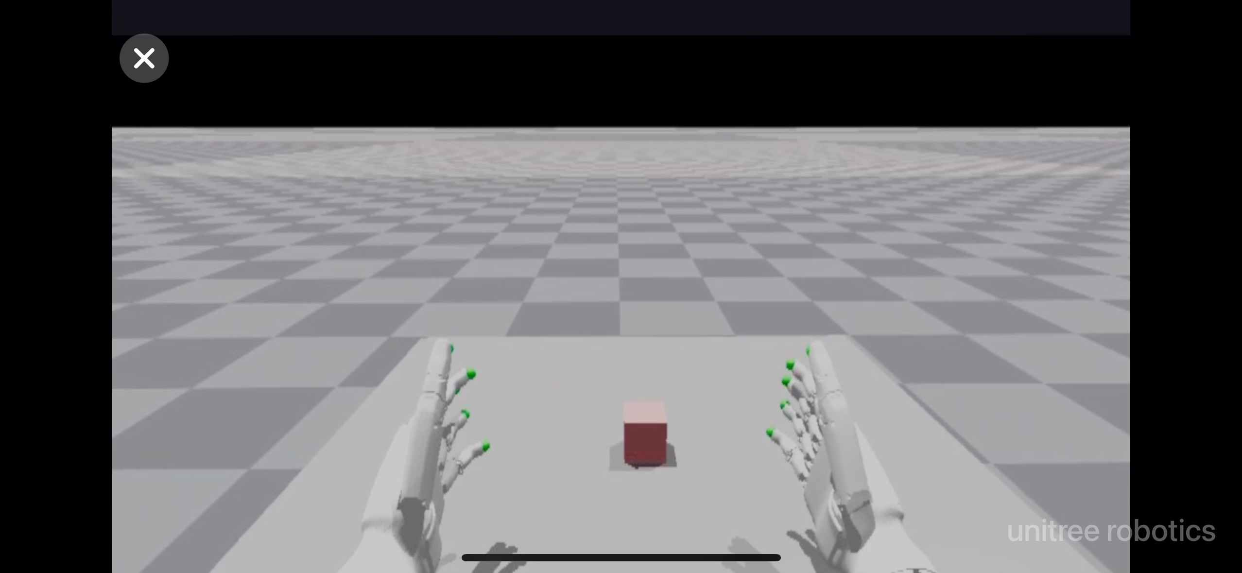 python teleop_hand_and_arm.py # 程序启动后,如果配置正确,终端最终输出 `Please enter the start signal (enter 's' to start the subsequent program):` 信息。 # 此时,佩戴 Apple Vision Pro 的操作人员应将手臂形状摆放为与 Unitree H1_2 初始姿态相接近的姿势,避免初始位姿差距过大导致机器人产生过大的摆动。 # 当操作人员姿势摆放好后,主机操作人员可按下 `s` 字母和回车键,正式启动遥操作程序。这时,机器人双臂便可跟随佩戴 Apple Vision Pro 的操作人员双臂移动。