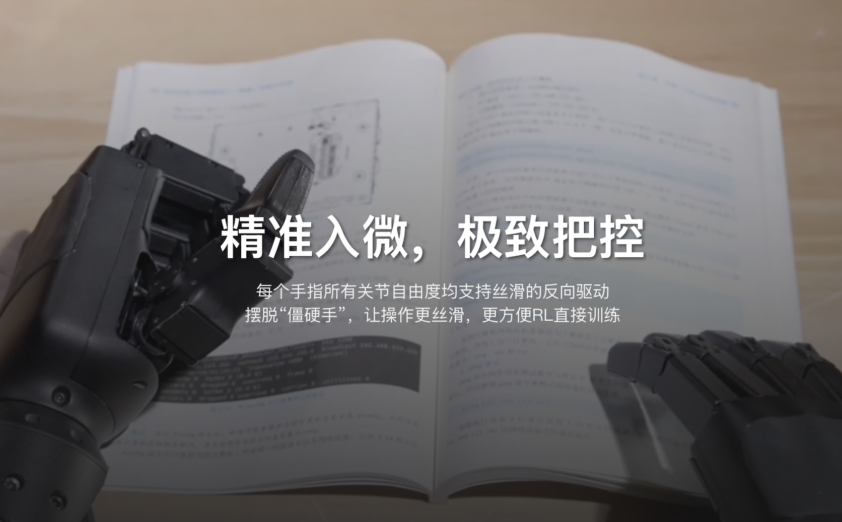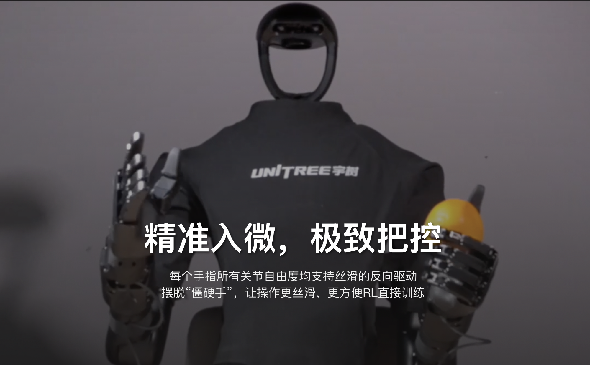 宇树自研五指灵巧手为宇树 H1/G1/H2等人形机器人设计的高性能末端执行器,主打仿生精细操作、柔顺力控与强化学习友好,适配工业装配、科研实验、服务机器人等场景;有基础版 Dex5-1 与带完整触觉传感的 Dex5-1P 两个型号;五指均可独立更换。 总自由度 20(16主动+4被动);拇指4自由度,其余四指各3自由度。 12个自研微型力控复合传动关节 + 4个微型力控齿轮传动关节;全关节支持丝滑反向驱动,无“僵手”感。四指侧摆 ±22°,贴合曲面/不规则物体;最小抓取直径10mm;指尖重复定位精度 ±1mm。 指尖力10N;朝下负载3.5kg、侧握负载4.5kg(室温抓5cm圆硬物)。 反馈数据:关节位置/速度/扭矩/温度、电压电流、IMU;支持位置/速度/扭矩/阻抗控制 •Dex5-1P 配置 94个触觉压力传感器(掌10+每指多组),支持触觉算法二次开发;基础版可按需选配。 可流畅完成打牌、拧魔方、翻薄书、精细插拔、装配等拟人化操作;适合强化学习(RL)直接训练;与宇树人形机器人无缝对接,便于快速部署与二次开发。