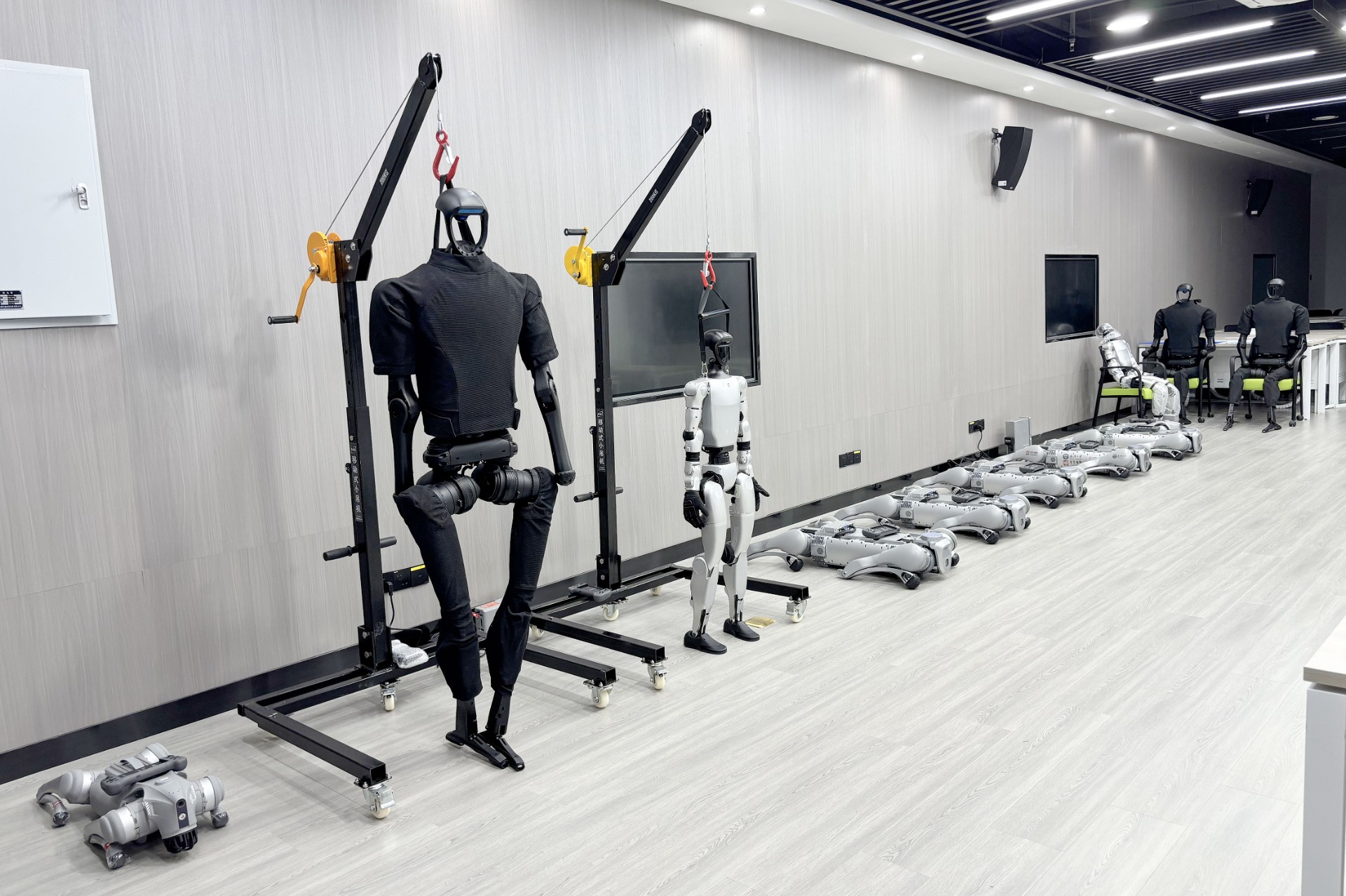 本通用机器人实验室由双足机器人通用智能实验平台和四足机器狗集群平台组成。其中,四足机器狗凭借高通过性,可承担复杂地形勘探、物资运输、灾害应急等任务,具备强适应性与鲁棒性;双足机器人负责人机交互共融、精细操作及类人环境任务执行,弥补灵巧度与场景适配短板,实现人与系统的“最后一米”交互。 该实验室方案通过异构多机协同训练,建立信任模型与任务共识,实现具身智能可控、可证、可复用;搭建机器人云控管理系统,达成机器人全生命周期云边端一体化管理;加速Sim2Real落地,形成可规模化复制的行业解决方案。