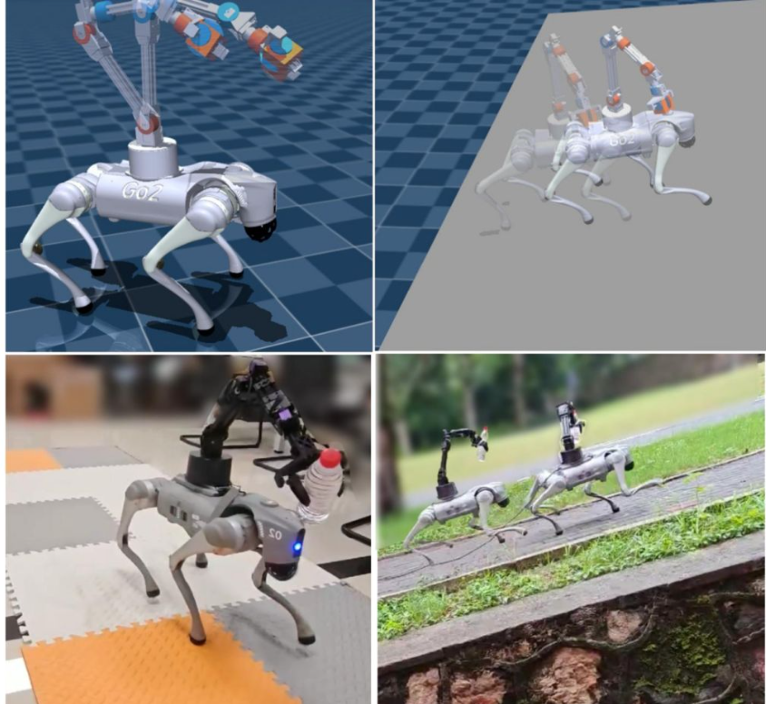 项目概述:当四足机器人在复杂地形执行物资运输、搜索救援等任务时,维持其自身稳定性是一个巨大挑战。特别是当负载具有“主动性”和“动态性”时——例如在机器人背部加装一个正在作业的机械臂,其质量分布和质心会随着机械臂的运动实时发生变化。这种主动负载产生的动态扰动,与复杂地形引起的姿态扰动叠加,形成了复杂的“地形-负载”双重扰动。