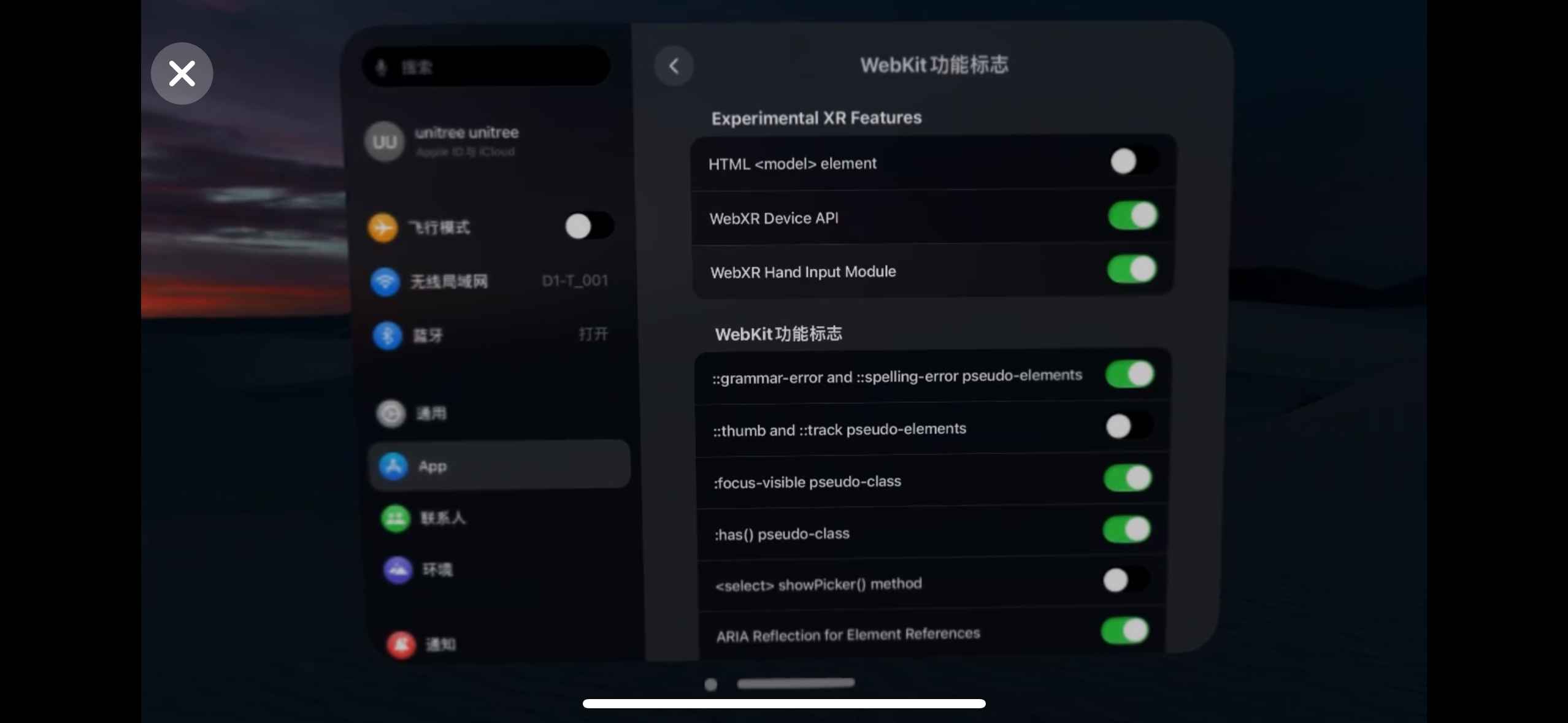设置 >> Apps >> Safari浏览器 >> 高级 >> 功能标志 >> 启用 WebXR 相关功能。