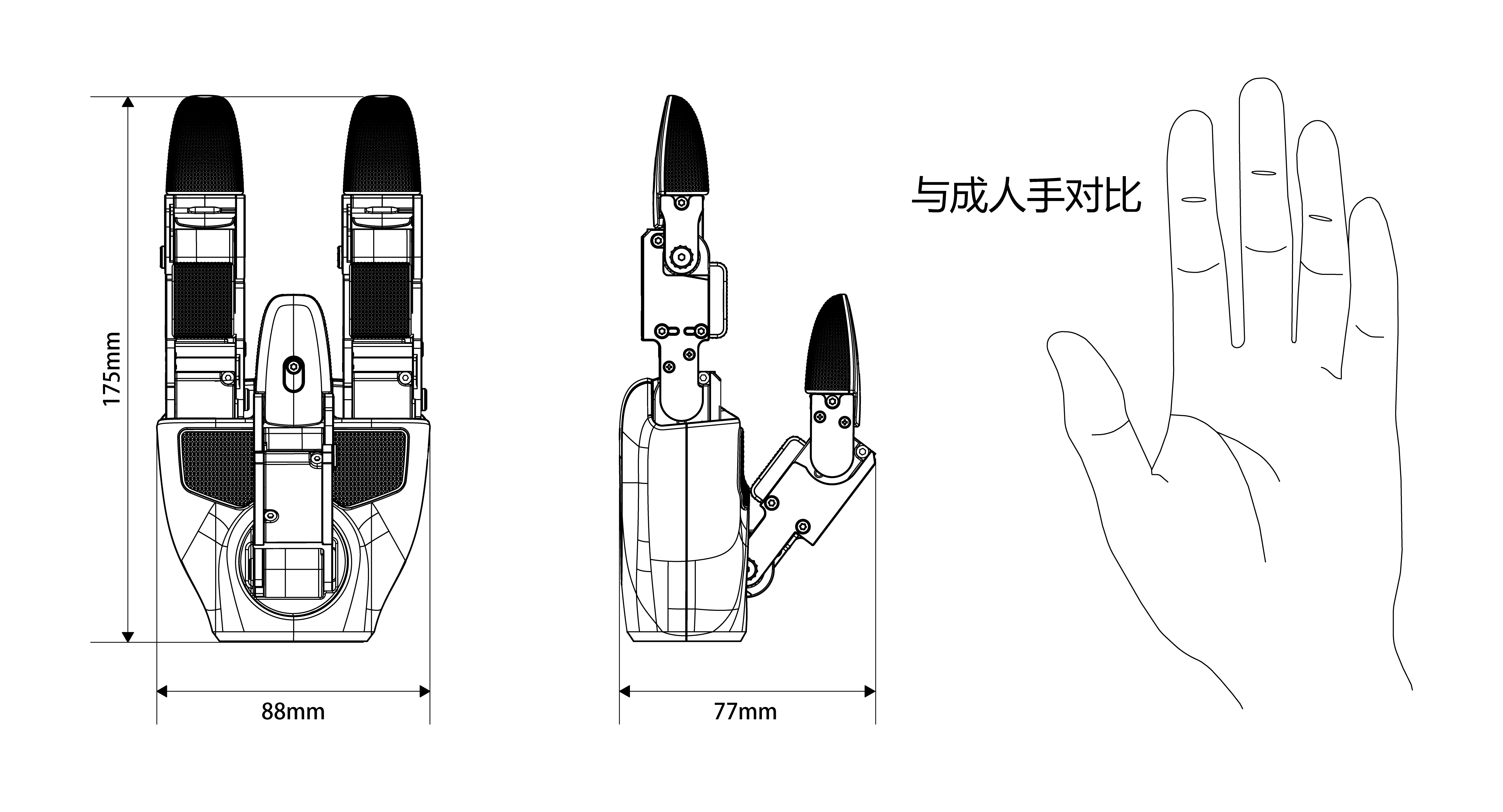 | 灵巧手自由度 | 7个(拇指 x 3+食指 x 2+中指 x 2) |
