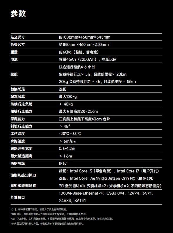 | 奔跑速度 | > 6m/s |