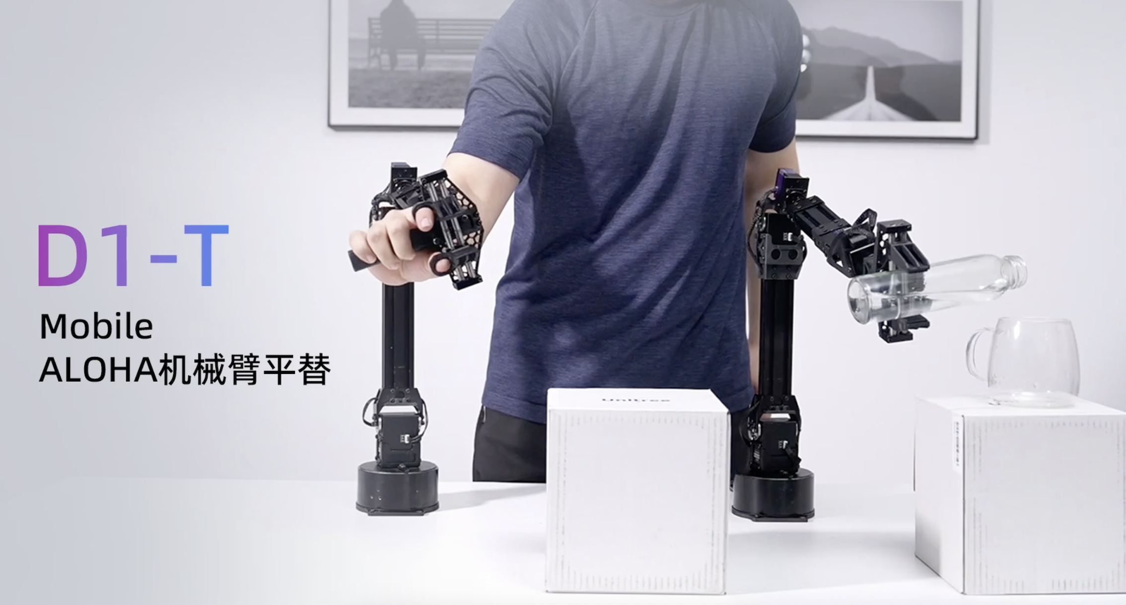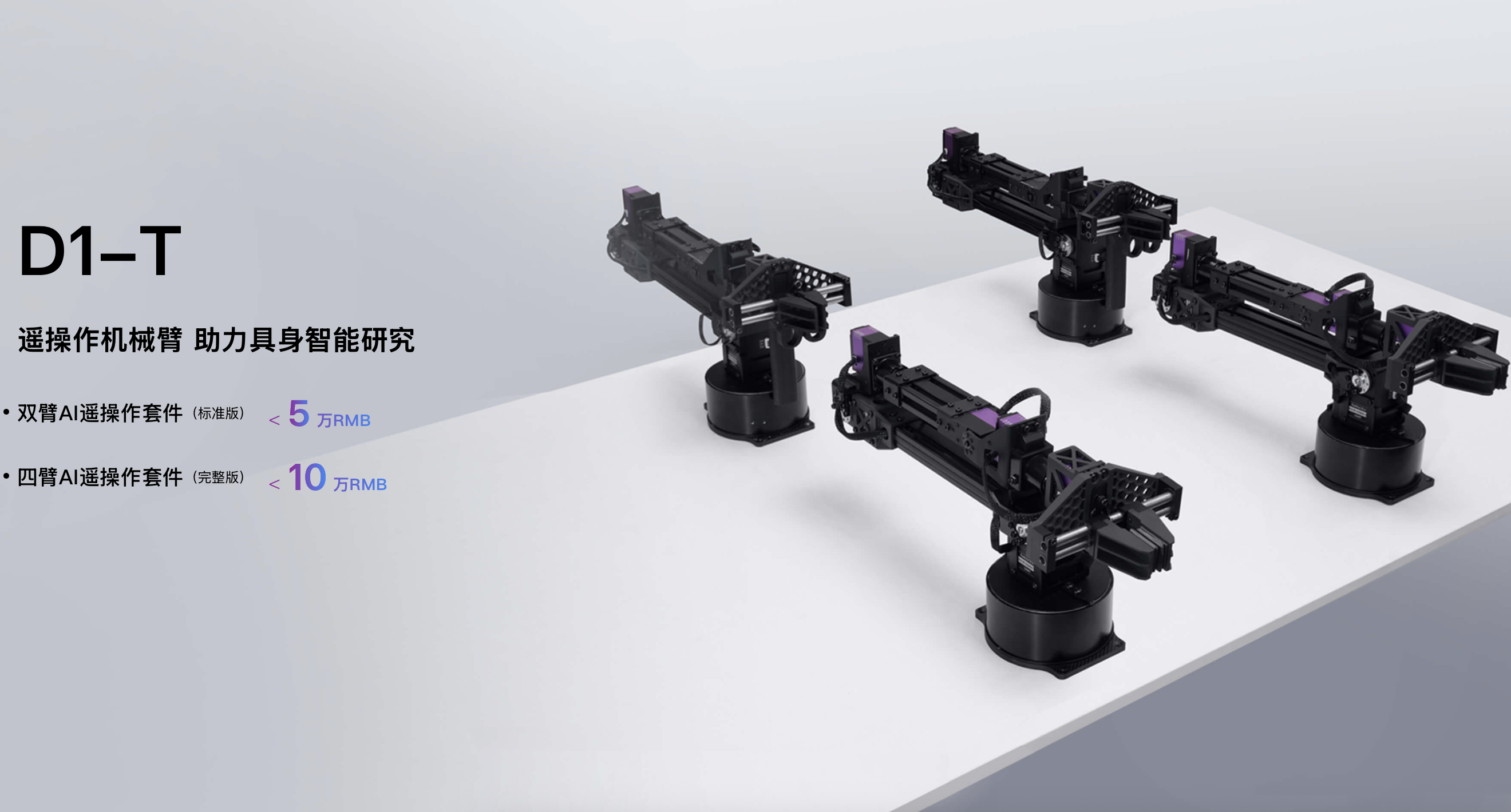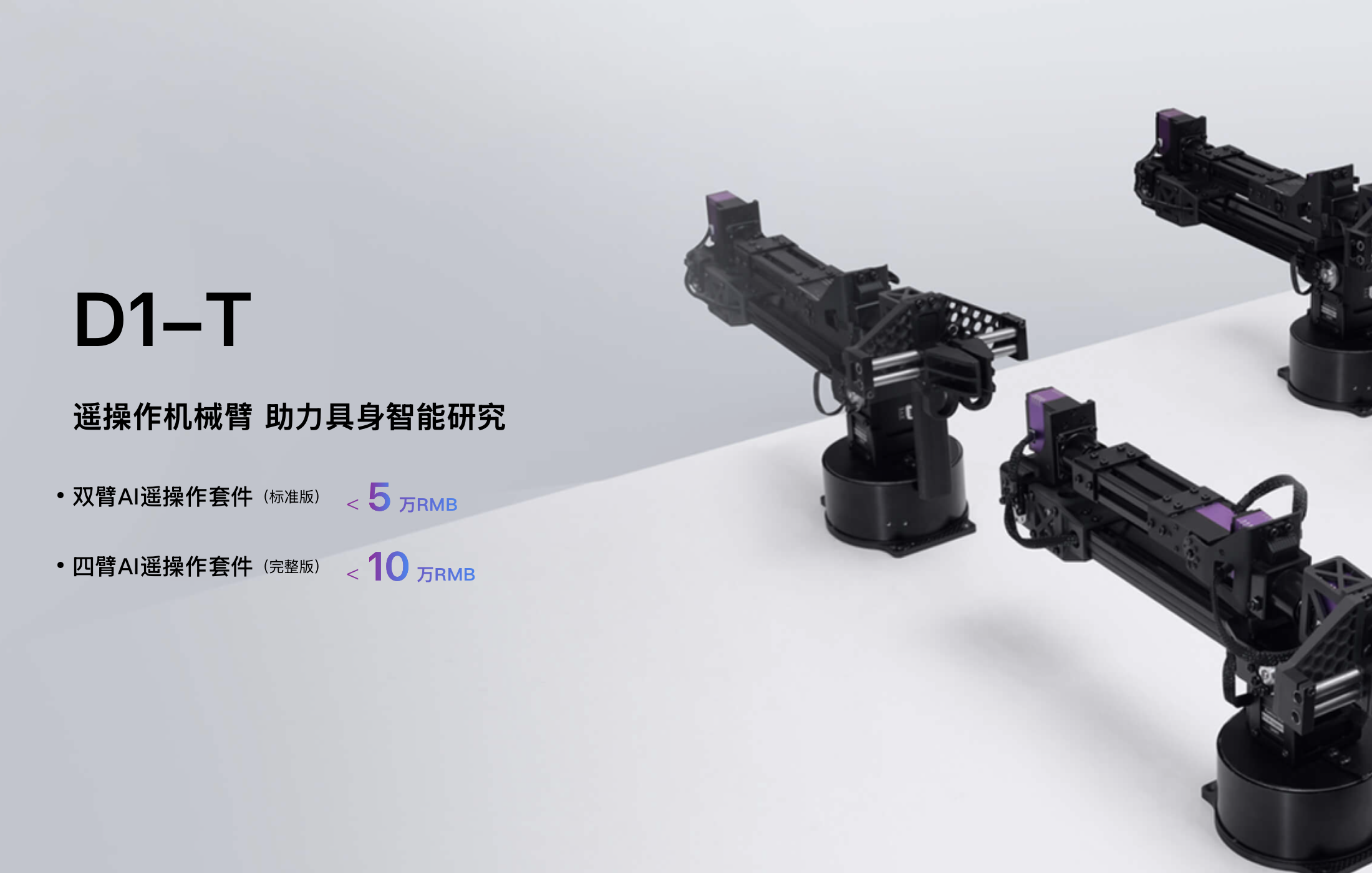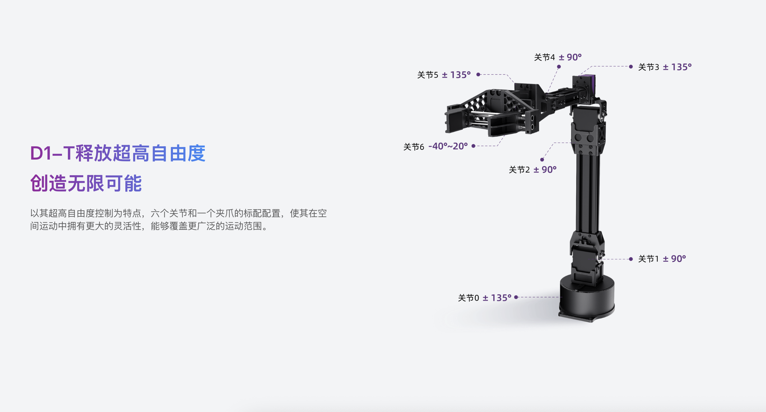 宇树D1-T是面向具身智能研究与遥操作场景的六轴协作机械臂。使用超精准力控数字舵机,是数据采集及具身智能的助手。标配6关节+1夹爪(7自由度),主打超轻量、高精度力控、高灵活、易开发。实现三闭环控制:位置/速度/力控,支持高精度力反馈。真六轴+夹爪:空间运动灵活,覆盖广工作范围。拖动示教:关节可自由卸力,手动拖拽记录轨迹。遥操作适配:低延迟通信,适配VR/手柄远程操控。开放接口:支持ROS、Python/C++二次开发,兼容移动底盘/相机等外设。应用场景包括:科研教学、AI具身智能、服务机器人、轻量工业协作、远程作业等。