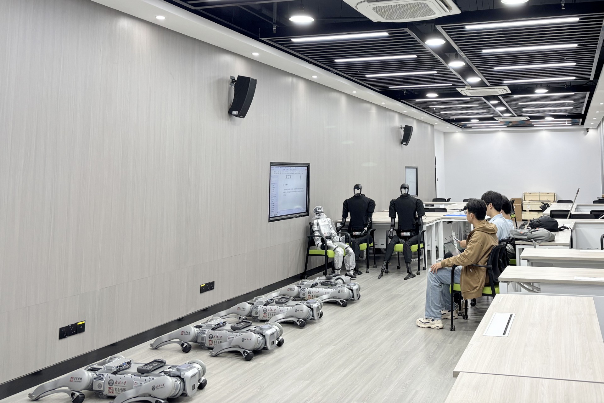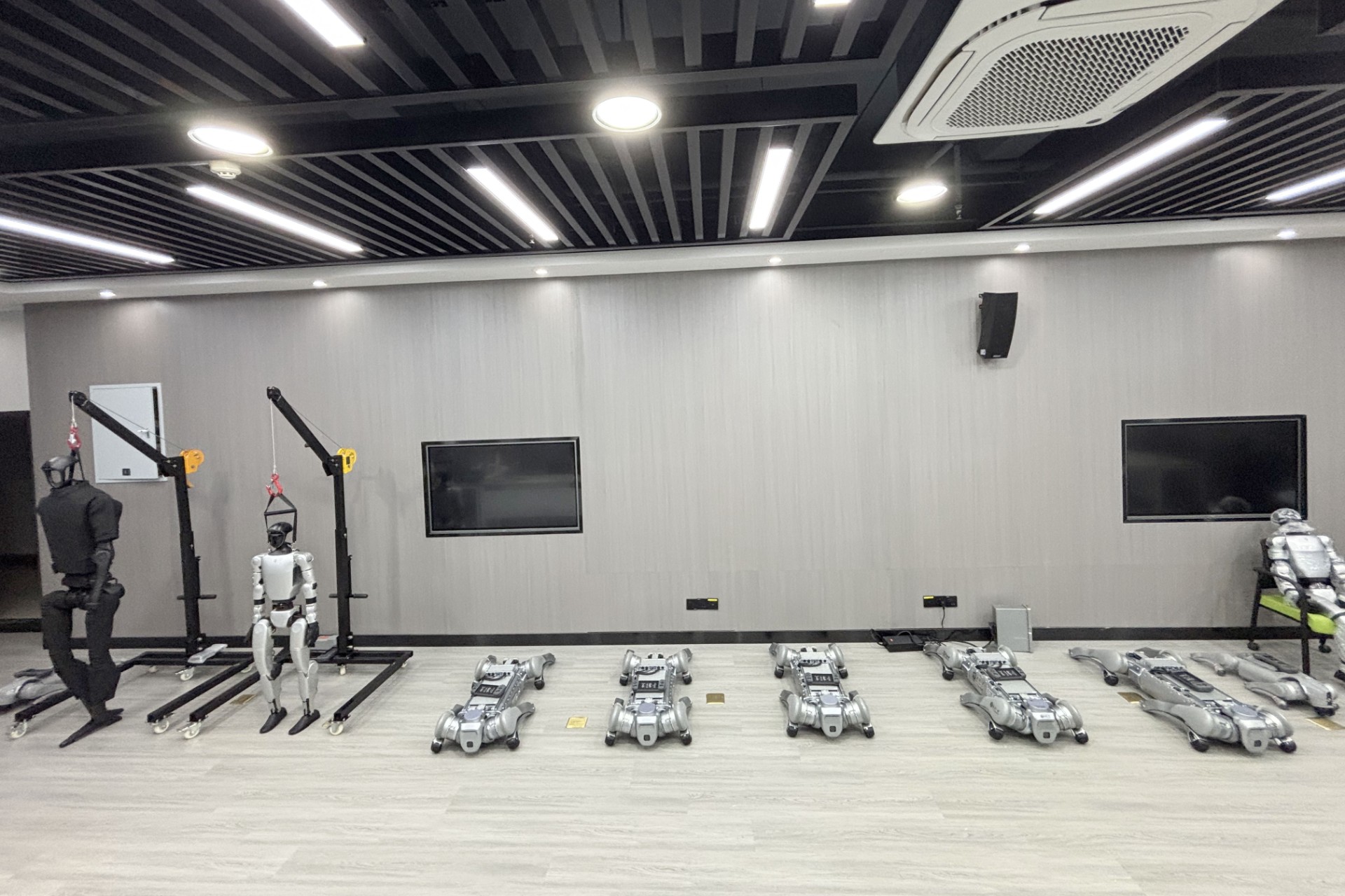 本通用机器人实验室由双足机器人通用智能实验平台和四足机器狗集群平台组成。其中,四足机器狗凭借高通过性,可承担复杂地形勘探、物资运输、灾害应急等任务,具备强适应性与鲁棒性;双足机器人负责人机交互共融、精细操作及类人环境任务执行,弥补灵巧度与场景适配短板,实现人与系统的“最后一米”交互。 该实验室方案通过异构多机协同训练,建立信任模型与任务共识,实现具身智能可控、可证、可复用;搭建机器人云控管理系统,达成机器人全生命周期云边端一体化管理;加速Sim2Real落地,形成可规模化复制的行业解决方案。